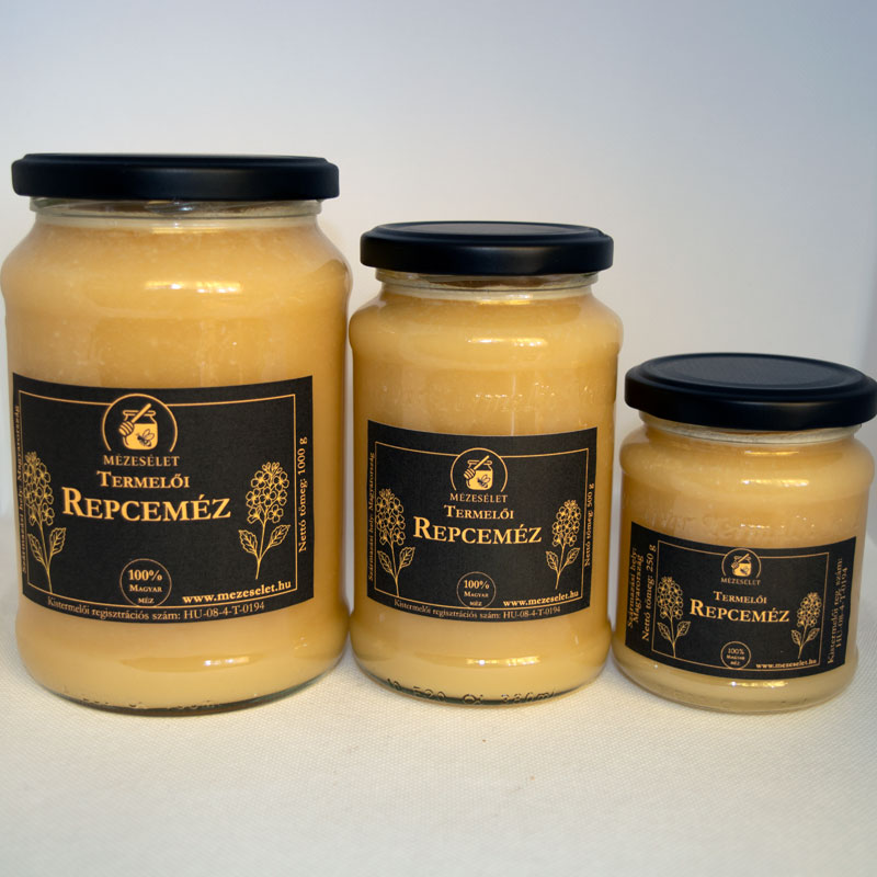Választható többféle méretben termelői repcemézünk közvetlenül a termelőtől. Prémium csomagolásban rendelhető 250 g-os, 500 g-os vgay 1000 g-os kiszerelésben.