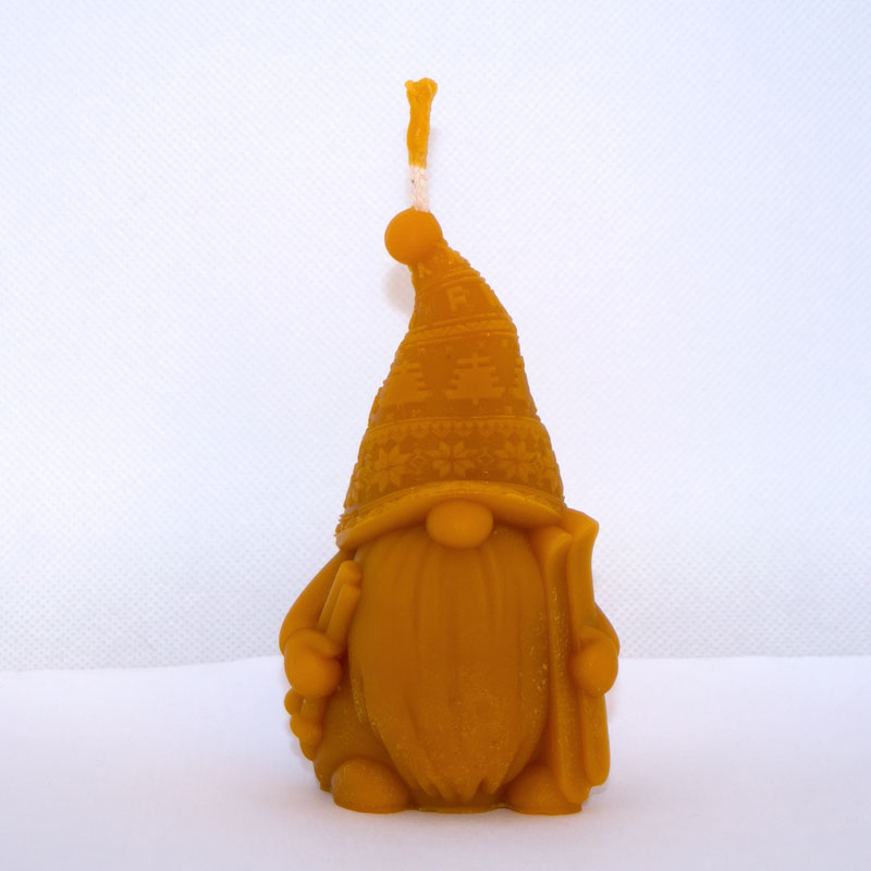 Roy manó méhviasz gyertya – bölcs kis manó hosszú szakállal és mintás sapkával.