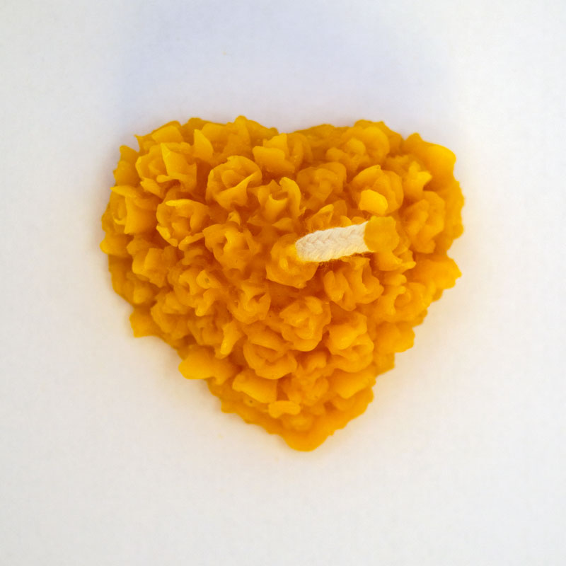 Szívecske formájú méhviasz gyertyánkat beborítják az apró pici rózsák. Egyszerűsége teszi egy apró csodás ajándékká. Elfér a tenyeredben, de ha meggyújtod, hatalmas lánggal fog égni. Sárga lángja bevilágítja a szobát. Persze csak ha van szíved meggyújtani ezt az apró különleges gyertyát.